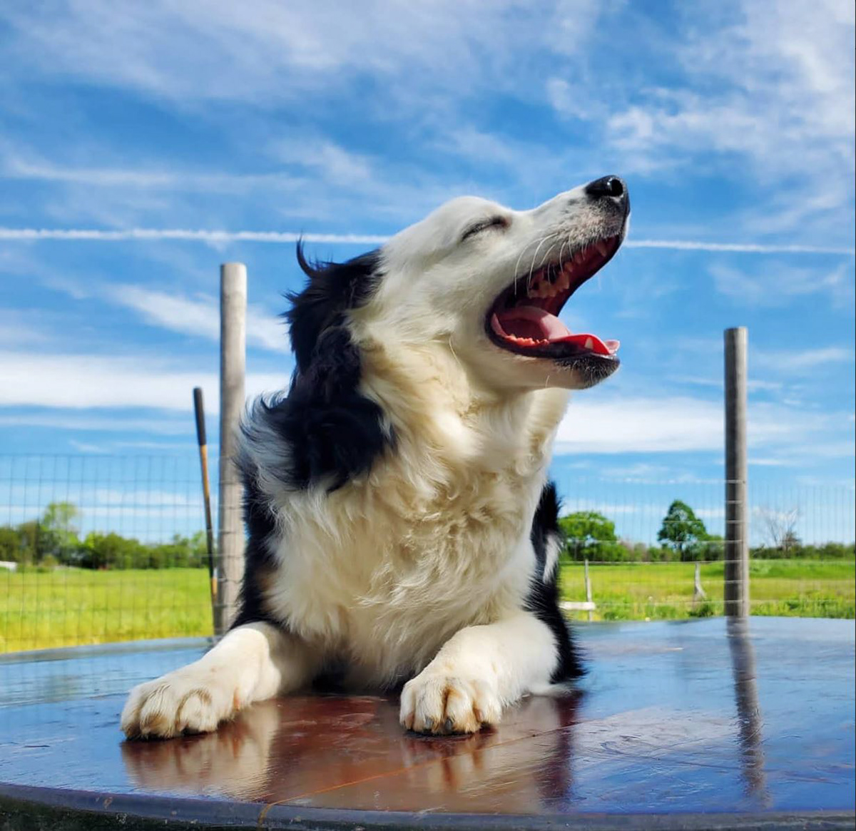 A tongue out on a blue sky background is ideal because it conveys a happy, well exercised dog and clients want to be engaged in beautiful sunny days. Success: When a client sees your photo, and thinks "I wish I was there too."